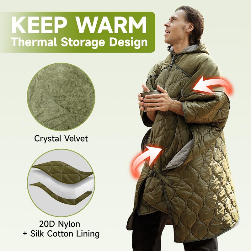 - 【Insulated Hooded Poncho】Stay warm with our cozy poncho featuring soft crystal fleece capes that provide extra shoulder warmth. The adjustable hood ensures a snug fit, while the sleeve buckles keep it securely closed for optimal comfort and insulation outdoors. Designed to fit all body types, it makes the perfect gift for outdoor enthusiasts of all ages.