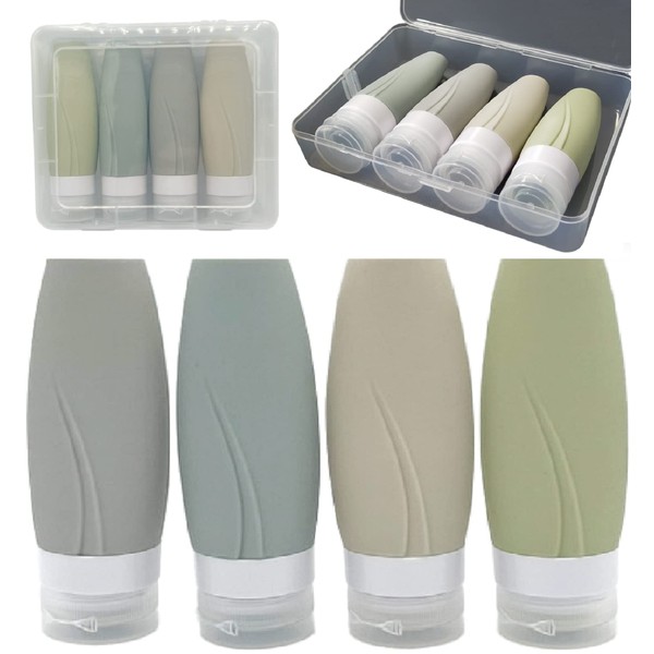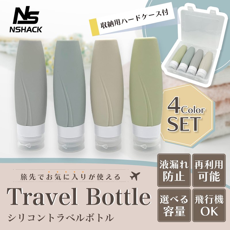 Travel Bottle, Set of 4 [Safe Hard Case Included, Shampoo Bottle, Travel Set, Travel Set, Refill Bottle, 2.3 fl oz (60 ml)