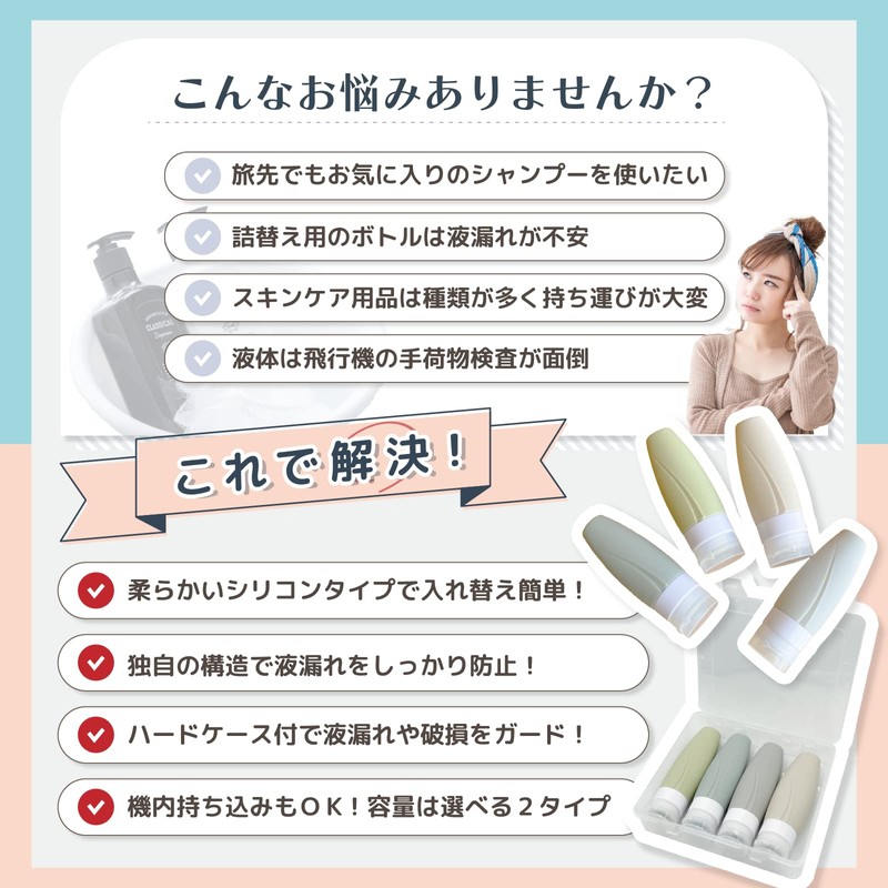 • A set of 4 travel bottles (2.0 fl oz (60 ml) and comes with a hard case for peace of mind
