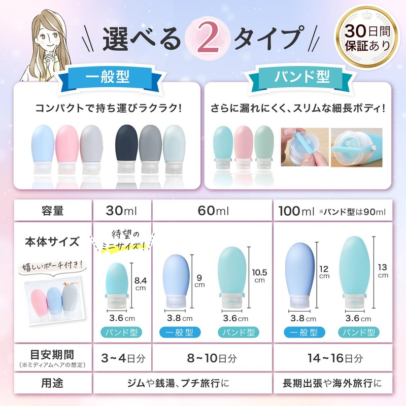 - Cute Look and Tension Up: A stylish oval travel item designed from scratch to match the taste of Japanese women. The colors are also trendy, pastel colors in recent years, and this travel bottle will make you feel better by having it on your trip. Not only is it cute, but the material is made of high-quality silicone. This convenient item is hard to break even if dropped and dries quickly even if it gets wet