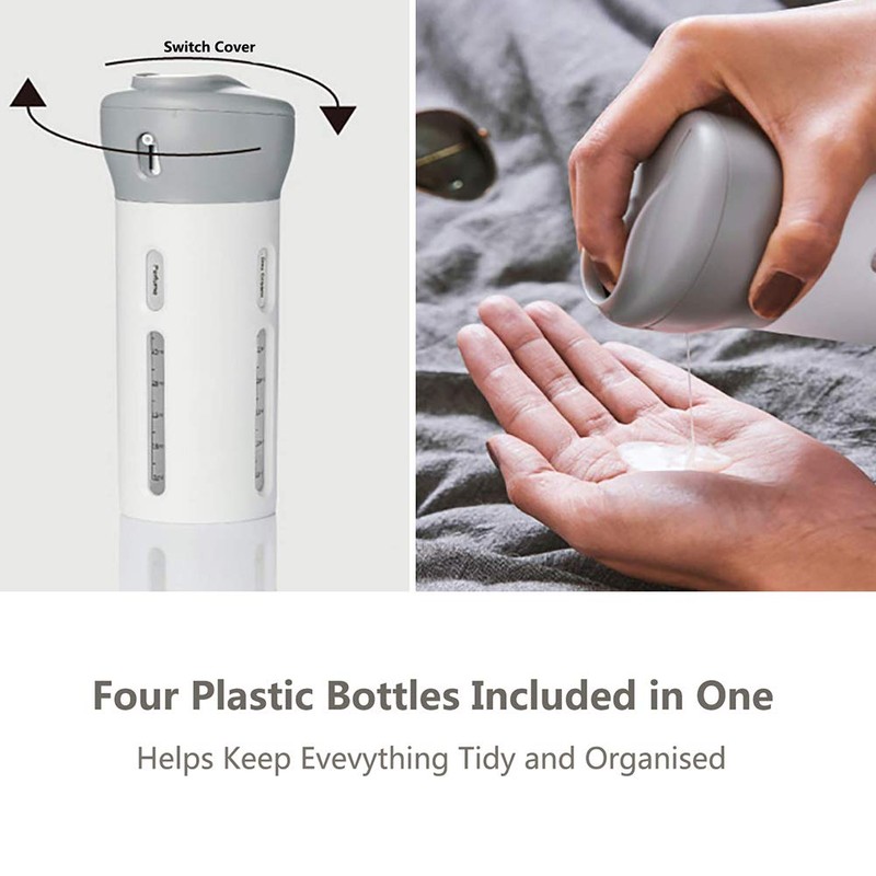 Travel Bottles 4 in 1 Travel Dispenser Refillable Cosmetic Container Set Plastic Leak-Proof Travel Size Toiletries Liquid Lotion Container Kit Portable, grey