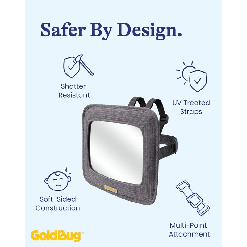 GoldBug Soft Sided Rear & Forward Facing Safety Mirror for Baby & Toddler - Shatter Resistant - Jumbo Baby Car Mirror