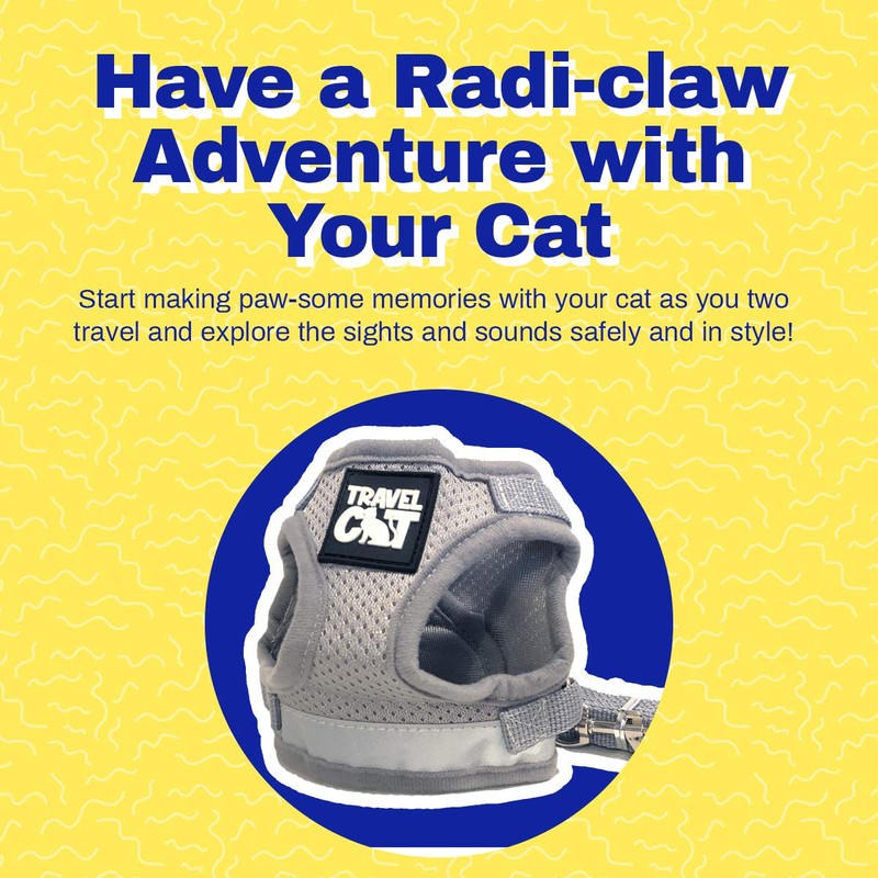 Cat Lovers Unite! Like many of you, we are inspired by our cats. After rescuing our first cat Andie from an abandoned backyard, we became “cat people” pretty much overnight. We wanted to take him with us during our travels so we launched this company in New York City shortly after. “The True Adventurer” Reflective Cat Harness and Leash Set for Adventure Cats Adventure cats & kitties need a safe and secure harness for all their travels. Specially designed for cats! That’s why we designed this premium cat harness and leash set with all the best features, so you and your pet can confidently step outside and enjoy the great outdoors together. Breathable, Secure and Snug Fit Our adjustable harness is made with strong, breathable mesh fabric so your cat stays comfortably secure in it. You’ll have no worries about their escaping because the buckles are built to stay put! Premium Safety Features Each harness has a reflective strip across the body so your cat can be seen from afar, even when it starts to get dark. The leash is made of extremely durable nylon to prevent escape, and it comes with a 360-degree rotating snap clip so it can adjust to your cat’s movements. Delightful Colors and Perfect Sizes Our harnesses come in four colors to suit your cat’s paw-sonality: Black, Grey, Orange and Red. To choose the best size, measure around their chest snugly, down past all the fur to ensure a secure fit. The straps are still adjustable, so it’s okay to pick one size bigger if your kitty is still growing! (Please Note: The X-SMALL size is for very young kittens only.)