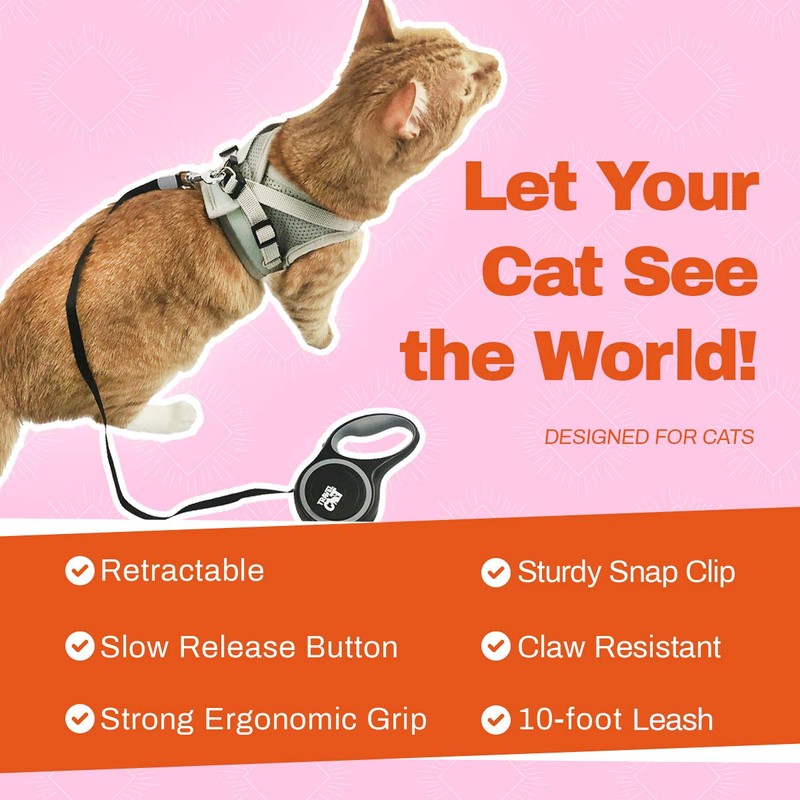 Travel Cat: “The Captain” Retractable Cat Leash - 10-Foot Length - Ergonomic Rubberized Hand Grip, Slow Release Button, Claw-Resistant Cord and Sturdy Snap Clip with 360-degree Rotation