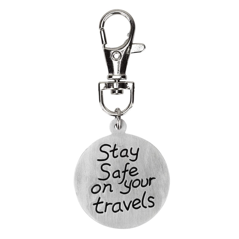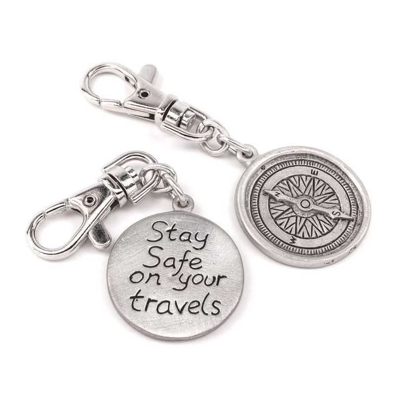 Travel Clip on Compass Design Metal Bag Charm with Stay Safe on Your Travels Message