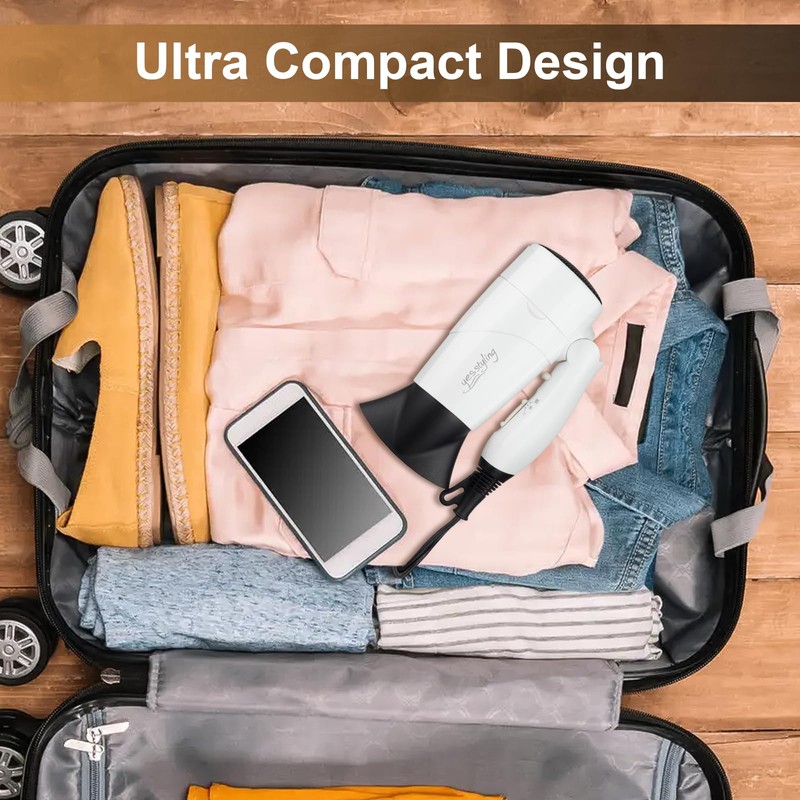 - Salon Functions - Non Dual voltage, 125V, 1875W; UL ALCI leakage protection plug. Cord length is 95.66''. Compact hair dryer, folding handle, lightweight design, low noise. Perfect for travel.
