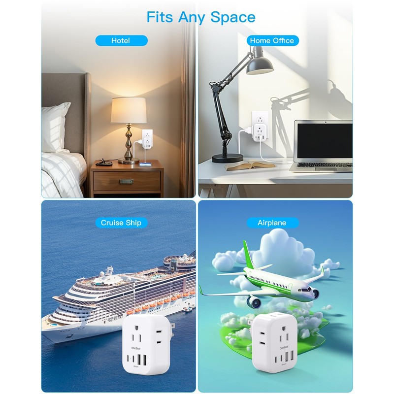 One Beat Multi Plug Outlet Extender with 4 USB Port and 4 AC Outlet is the ultimate solution and an easy addition to your travel cruise essentials list.