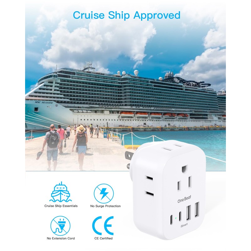 - IMPORTANT: Cruise lines require that power strips DO NOT have Surge Protection and many prohibit Extension Cords. This One beat cruise power strip was made specifically to adhere to these rules so it’s fully cruise compliant. It is the only cruise-specific Non Surge Protected Travel Power Strip you’ll find to comply!