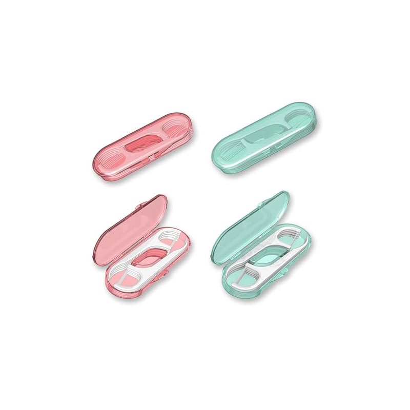 Travel Dental Floss Case with Toothpick, 10 Floss Picks Per Pack, Pink and Mint Green, Compact Size (2, Pink)