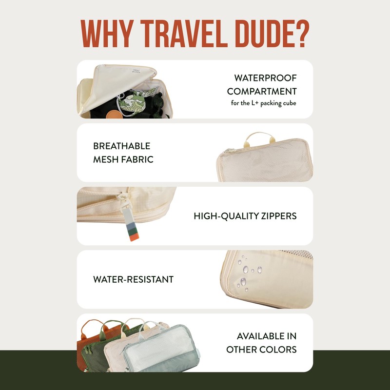TRAVEL DUDE Compression Packing Cubes – Packing Cubes Compression Set for Suitcases, Backpacks & Travel – Lightweight, Compressible Travel Organisers for Luggage (4 pieces, Sand Beige)
