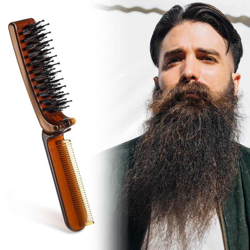 - GREAT 3 in 1 DESIGN - The folding hair brush and comb is designed with a combination of nylon bristles and nylon teeth,the nylon teeth in the comb unclog and easily penetrate the hair. The bristles make your hair brighter and softer. and the mini Pocket hair brush has a mini comb on another side handle