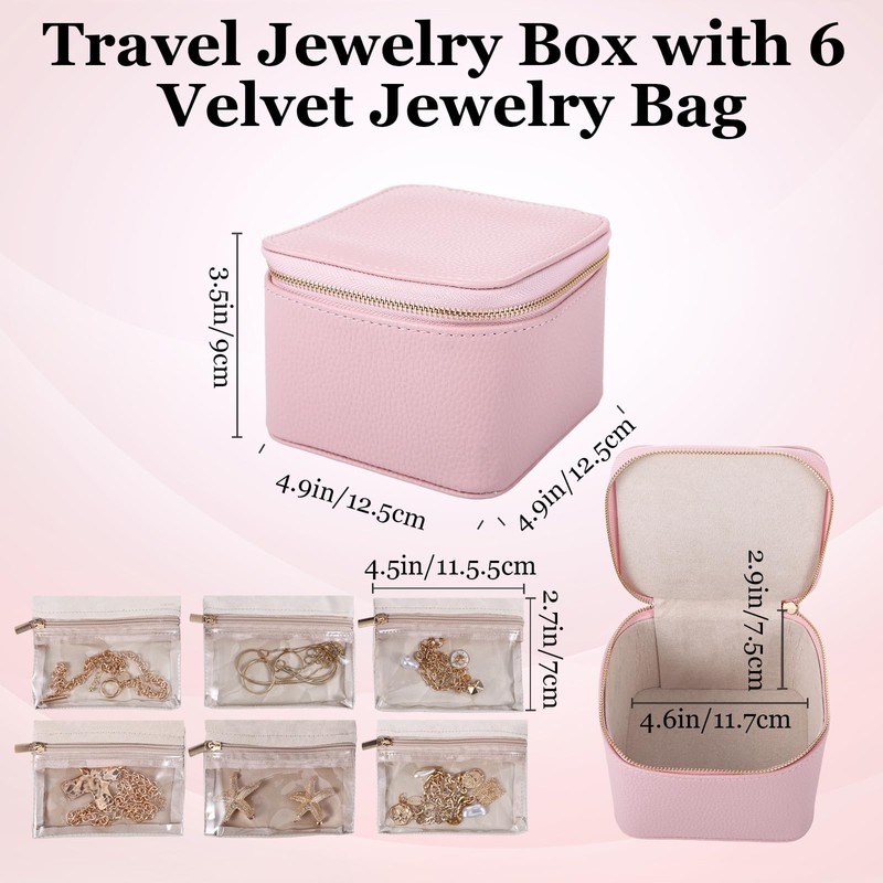 Size: The storage box itself measures 12.5 x 12.5 x 9 cm (4.9 x 4.9 x 3.5 inches), and each velvet pouch is 11.5 x 7 cm (4.5 x 2.8 inches), making it ideal for packing in your luggage or handbag.
