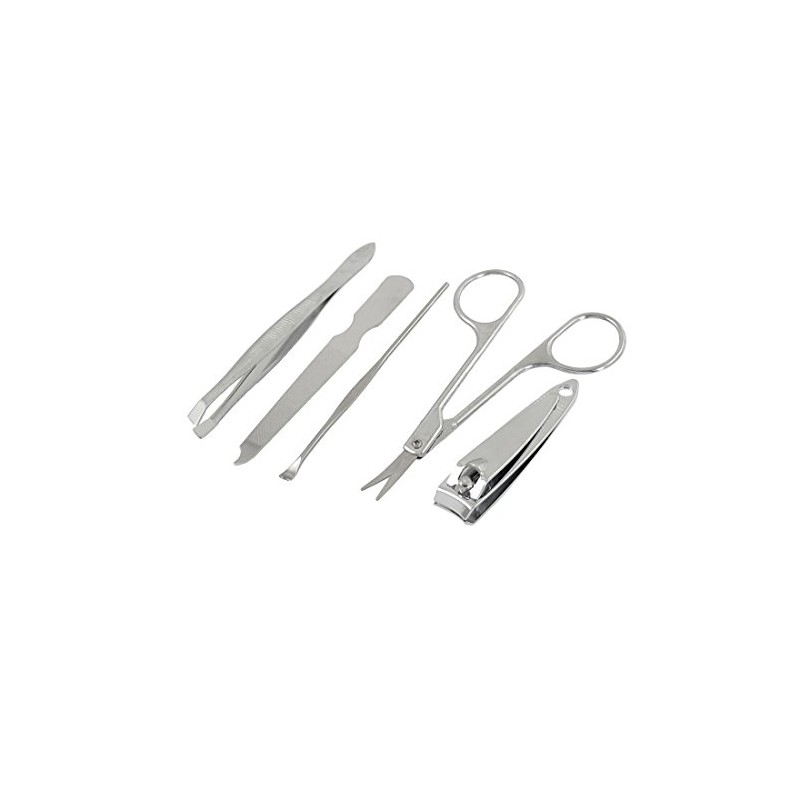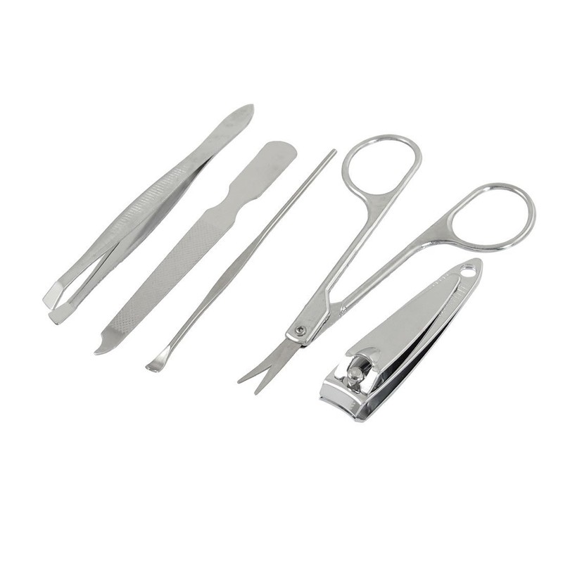5 in 1 cosmetic set including: Eyebrow Clipper, Nail File, Ear Cleaner, Eyebrow Scissor, Nail Cutter.