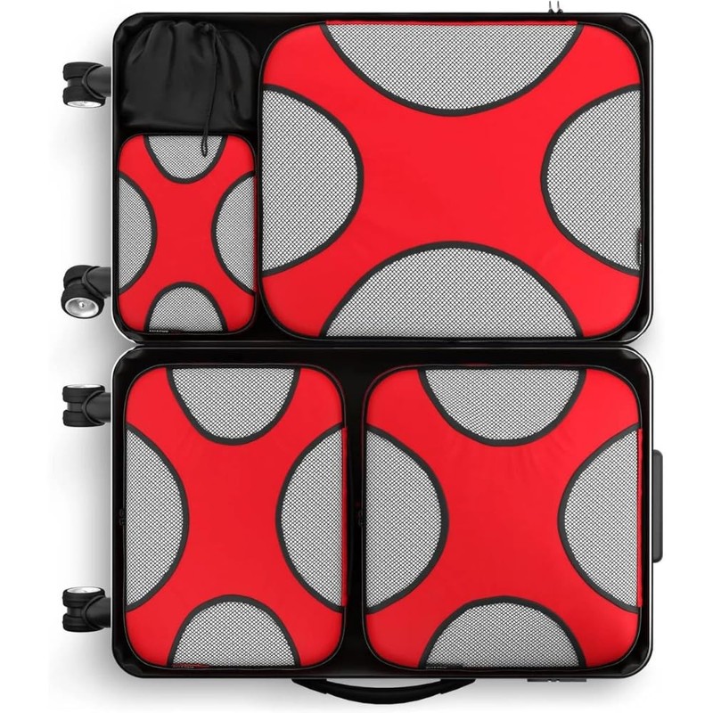 Travel Mesh 5 Set Packing Cube Organizers With Laundry Bag (Red X-Design)