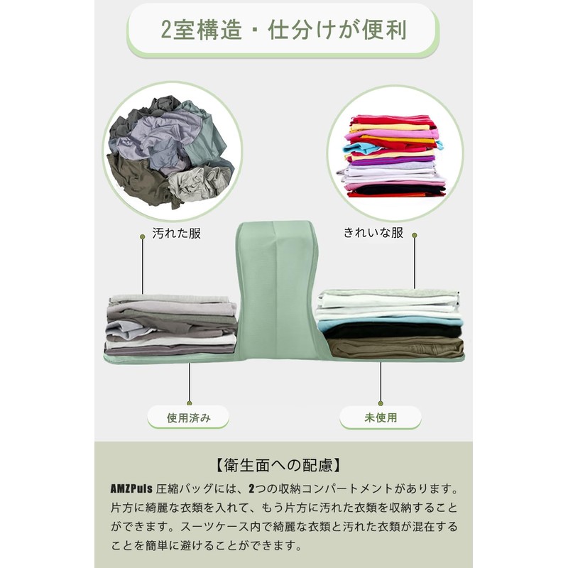 • 【Sanitary Consideration】AMZPuls compression bag has two storage compartments. You can put some beautiful clothes in one side and store dirty clothes on the other. It is easy to avoid the mix of clean and dirty clothes in your suitcase