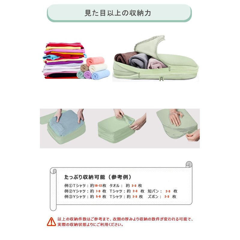(Easy Compression with Zipper) Unlike regular compression bags, there is no suction device for compressing, so you can simply close the zipper. It looks like a small compression bag, but it actually holds a lot of clothes. The perfect storage bag for travel, business trips, hotel overnight etc.
