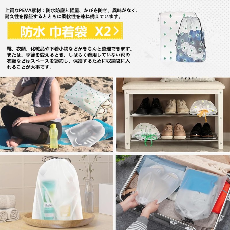 - Travel Pouch Set of 10: Clothes storage pouch x 4, cosmetic pouch x 1, drawstring pocket x 1, zipper pocket x 1, shoe bag x 1, waterproof bag x 2. The 10-piece travel pouch set allows you to neatly organize and organize small items for excellent storage. It can be stored separately and hygienically for items such as unworn clothes, dirty clothes, toiletries and shoes