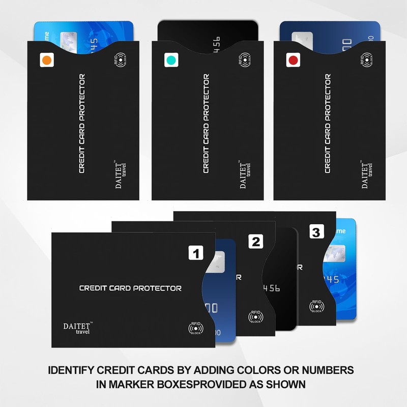 • PROTECT YOUR INFORMATION: RFID card sleeves are designed to protect credit cards, money cards, identification cards from electronic fraud or theft. Lined with an electromagnetically opaque shield to block signals from high-tech pickpockets & unauthorized electronic scanning devices, provide superior travel security.