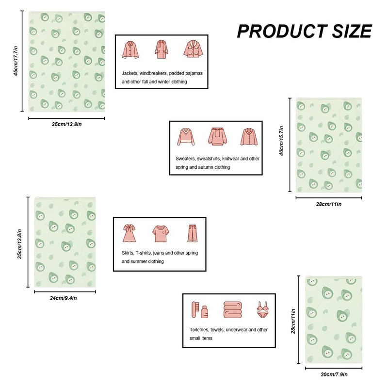 • Practical combination: the travel storage bag set contains 4 different sizes to meet your daily use. 20 x 28 cm, 24 x 35 cm, 28 x 40 cm, 35 x 45 cm.