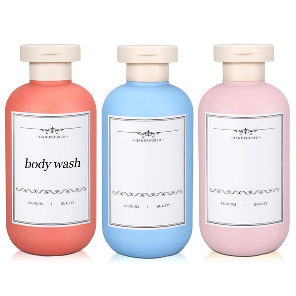 Travel Shampoo Bottle, Empty Plastic Squeeze Bottles 6.8 oz with Flip Cap, Lotion Container for Toiletries, Travel Size Shampoo and Conditioner (Blue/Orange/Pink, 200 ml)
