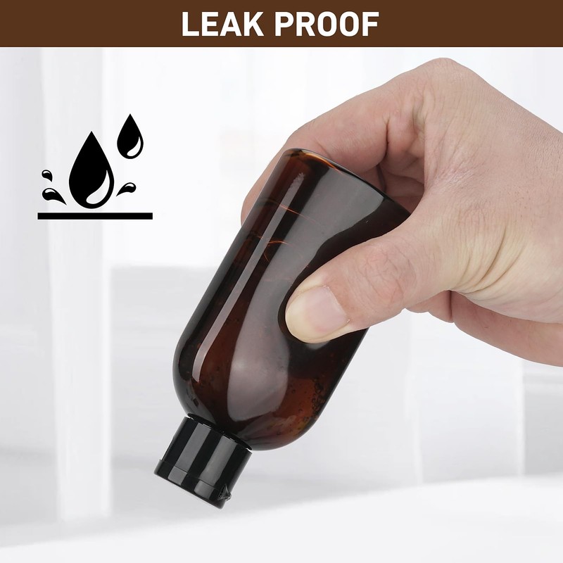 • Leak-proof Travel Toiletry Bottles: Experience of mind with our premium travel containers for toiletries. Crafted from sturdy, PET plastic, these travel shampoo bottles feature an easy-squeeze design that dispenses liquids smoothly without leaks or spills. Say goodbye to spills and no hassle travels with these travel toiletries reliable companions.