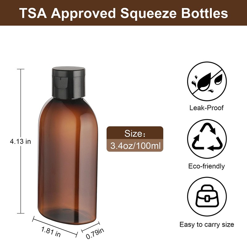 • Multi-Use: Versatility at your fingertips. These versatile 3.4 oz travel bottles tsa approved accommodate a wide range of personal care products, from shampoo and conditioner to lotions and makeup remover. Fill them up for any indoor or outdoor activity, ensuring you're prepared wherever your journey takes you. If you have any questions, please tell us, and we will do our best to give you a satisfactory answer.