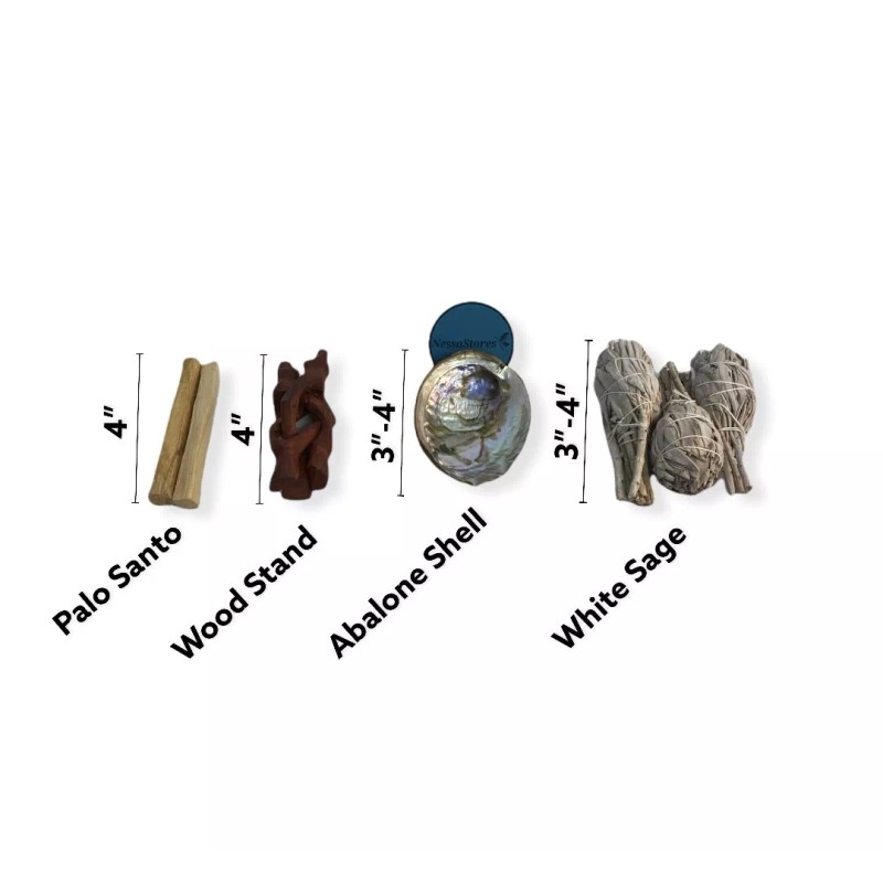 Travel Size Smudge Kit - Shell + Stand + Sage + Palo Santo (10 Kits) #JC-210