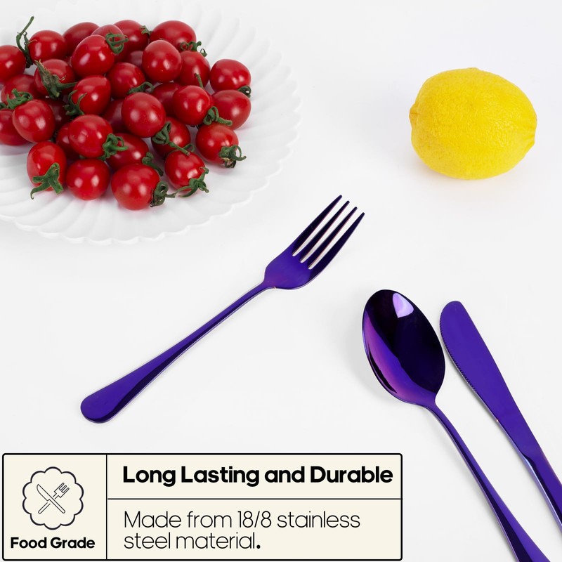 Travel Utensils with Case, Quatish Portable Silverware Set for Work, Stainless Steel Reusable Travel Cutlery Set, Fork and Spoon Set for Camping, EDC Gadgets, Lunch Box for Men, Purple