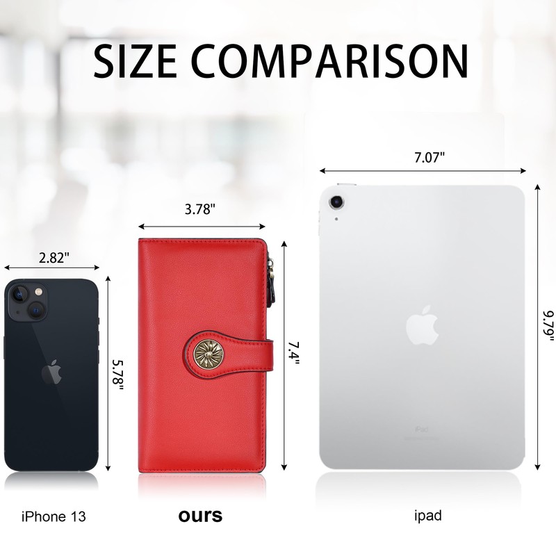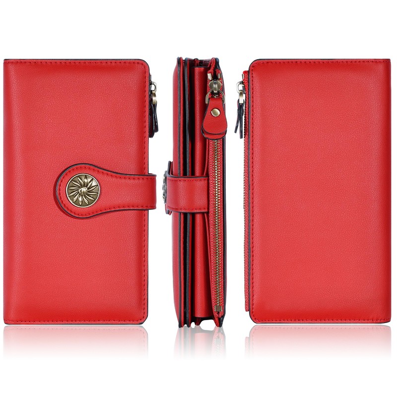 Travelambo Wallets Women RFID Large Capacity Luxury Waxed Leather Clutch Wallet Multi Card Organizer (Red)