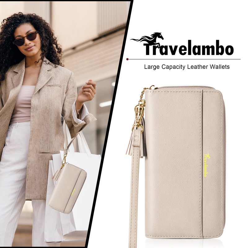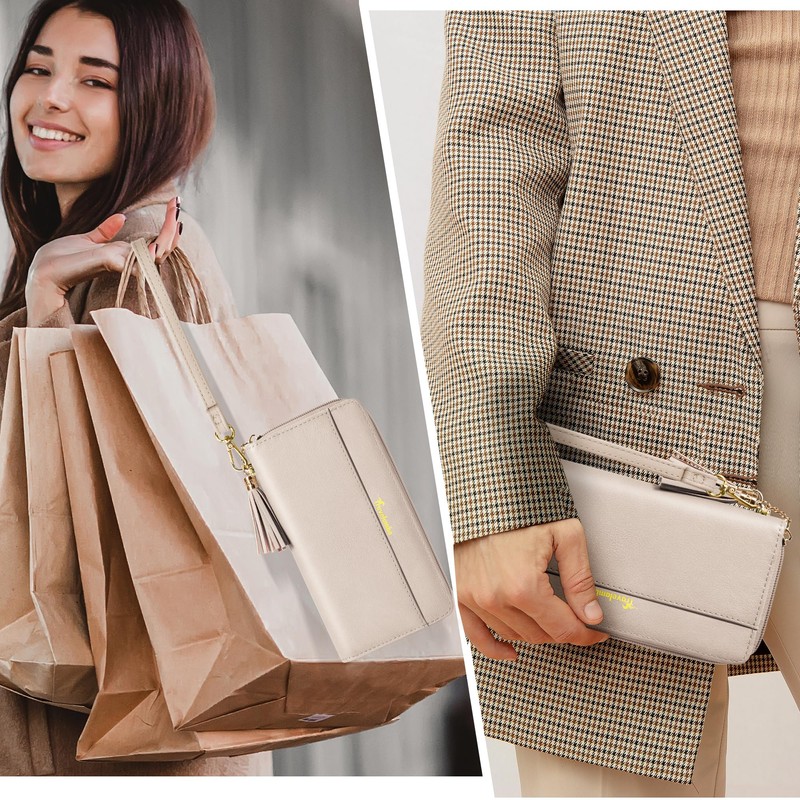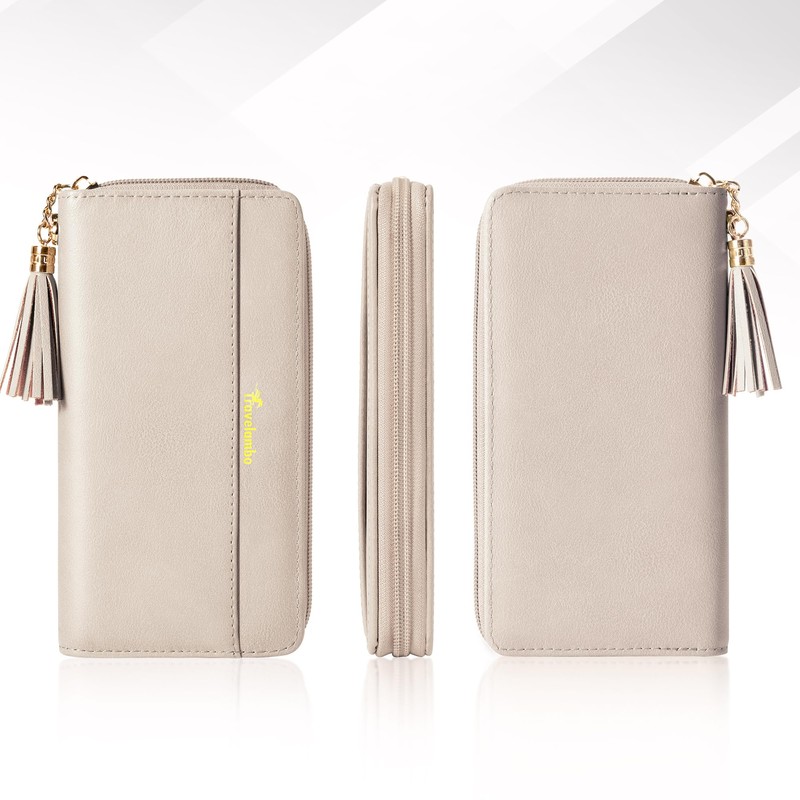 Travelambo Womens Wallet Tassel Bifold Ladies Cluth Wristlet Wallets strap Long Purse