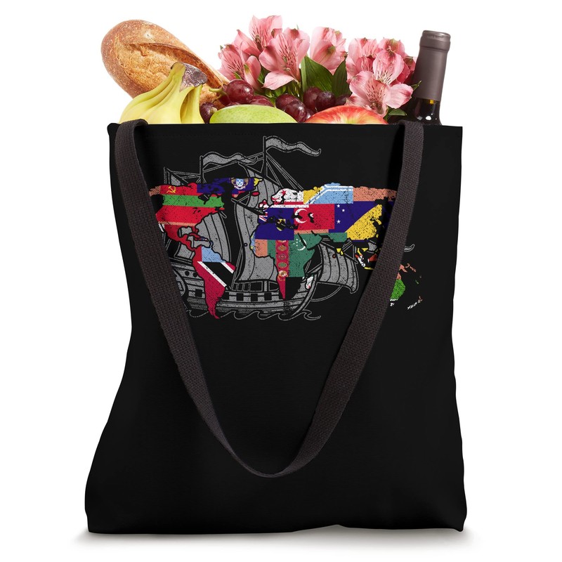 Travelling Sailing Ship Traveler World Map World Flag Tote Bag