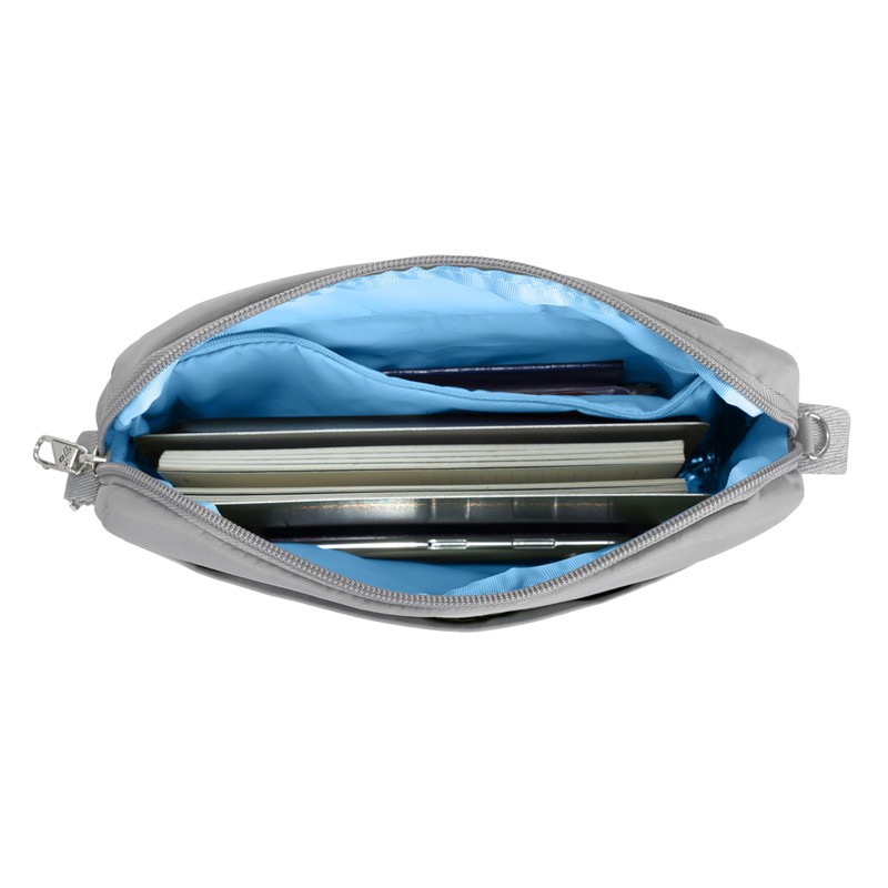 - Roam at-ease, and hands-free! This East/West Crossbody has a built-in 5-Point Anti-Theft security system with: a slash-resistant body and straps; Locking compartments; Lock-down hardware and RFID blocking pockets and slots, for passports and cards, prevents thieves from breaking into, snatching your bag, or scanning your identity.