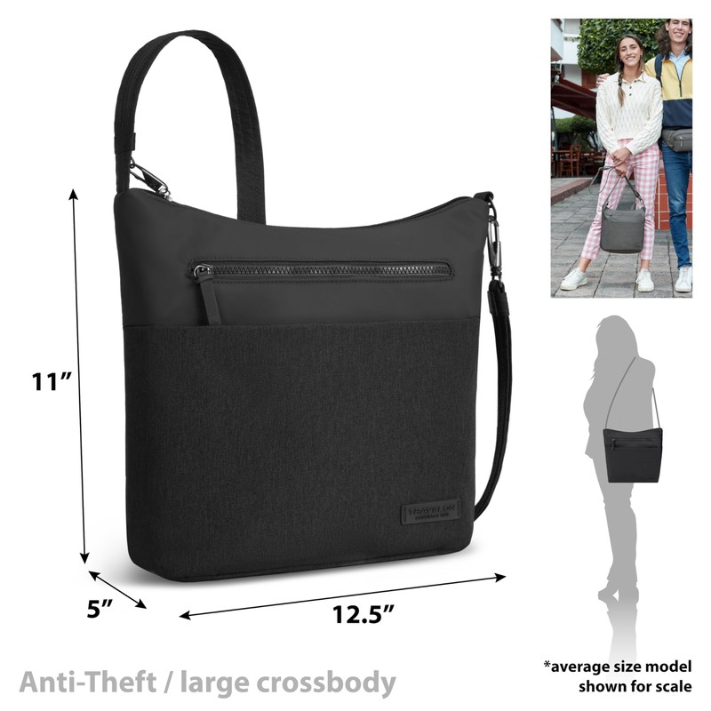 - TRAVEL SECURLY AND STREE-FREE with Anti-Theft features like locking zippers, slash-resistant body panels, a slash-resistant shoulder strap that is adjustable so you can find the perfect fit plus it can be attached to a stationary object to prevent a grab-n-go and a RFID protected pocket to store your wallet, Passport or any other item that stores your personal information and you are protected from high-tech electronic readers trying to steal your identity.