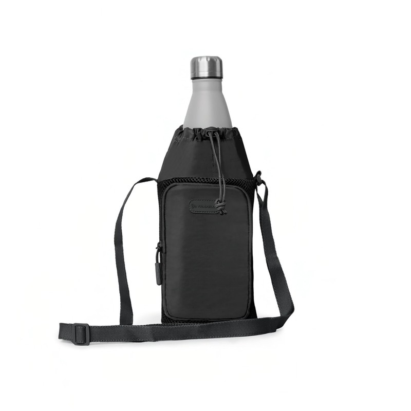 Travelon Unisex's Pi Gogo Insulated Water Bottle Tote Crossbody, Black, 5”W x 8”H x 4”D
