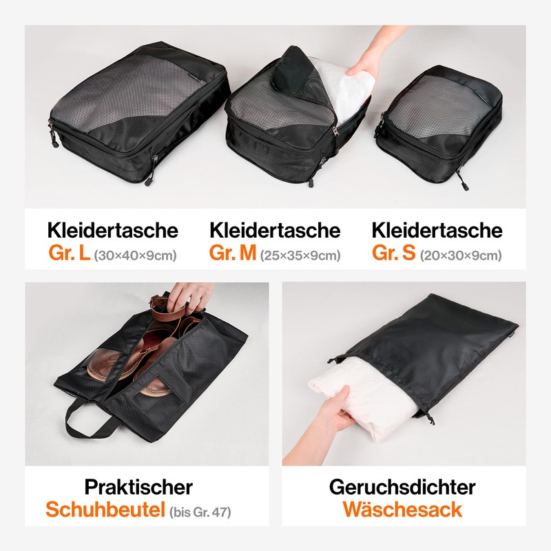 - ✅ Ultimative Organisation: Verschiedene Größen, Schuhtasche & Wäschebeutel für strukturiertes Packen.
