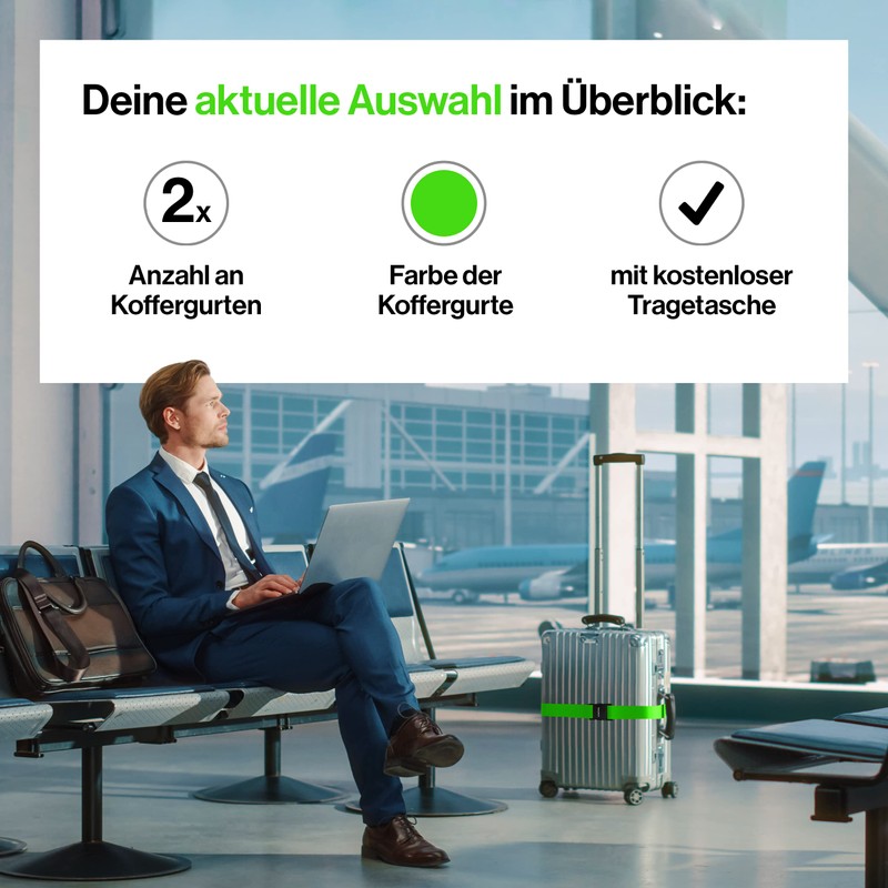 Travely® Premium Luggage Strap – Particularly Eye-catching and Safe – Includes 2 Name Badges – Suitcase Strap Ideal Cross – [Set of 2] – Green