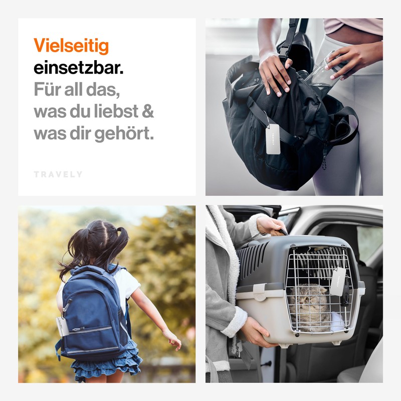 The Travely luggage tags are universally applicable. Whether backpacks, bags or suitcases, your luggage is always optimally recognisable.