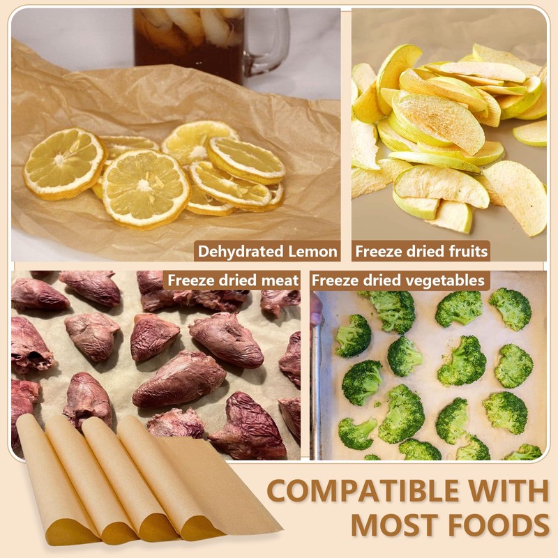 - 【Selected Material】The tray mat is made of the highest quality raw material, wood pulp and parchment, which has the characteristics of non adhesion and durability. In addition, the material of wood pulp is food grade and has no effect on most freeze-dried foods.