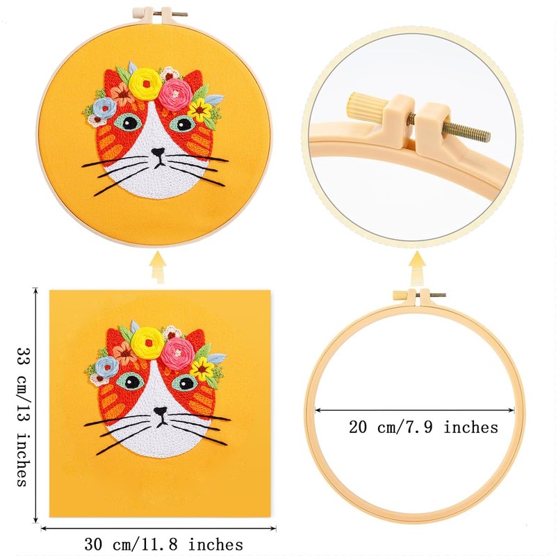 Traziewell Beginners Embroidery Kit for Adults Cross Stitch Kit with Cat Pattern and Instructions Embroidery Kits with Hoops Color Threads and Tool, 0524