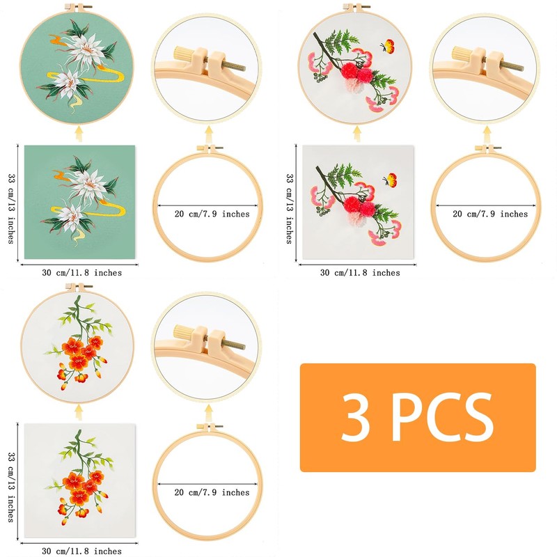• Embroidery KitsContents - 3*embroidery cloth,3*embroidery hoop,3*English instruction,embroidery needles,embroidery threads of different colours,just with this kit, you can finish a pretty embroidery.