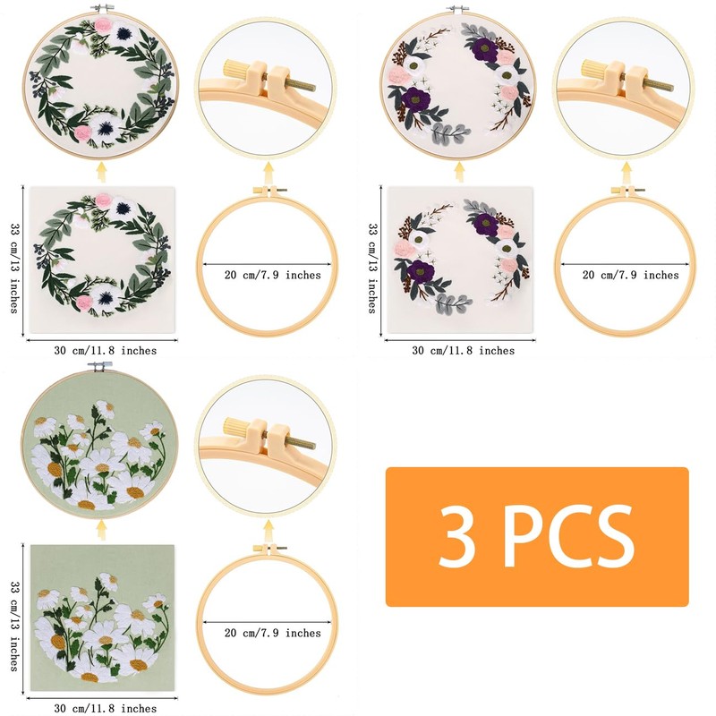 - Embroidery KitsContents - 3*embroidery cloth,3*embroidery hoop,3*English instruction,embroidery needles,embroidery threads of different colours,just with this kit, you can finish a pretty embroidery.