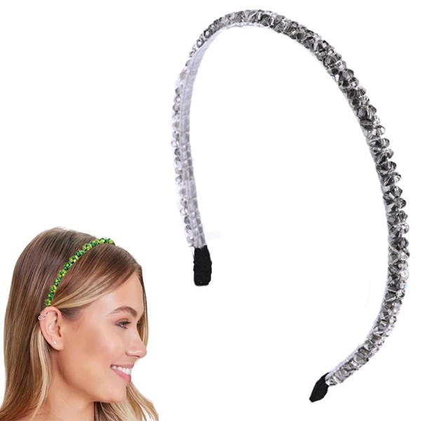Traziewell Glitter Headbands for Adults Silver Headband Rhinestone Beaded Headbands No Slip Jeweled Hairband for Women Girls 1905