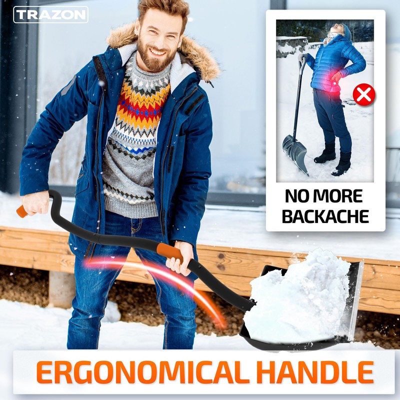 - Work without backpain. Our shovel features a curved ergonomic handle made from sturdy aluminum, allowing you to work with minimal effort, reducing the strain on your back and joints. No more worrying about unpleasant aches after working outdoors