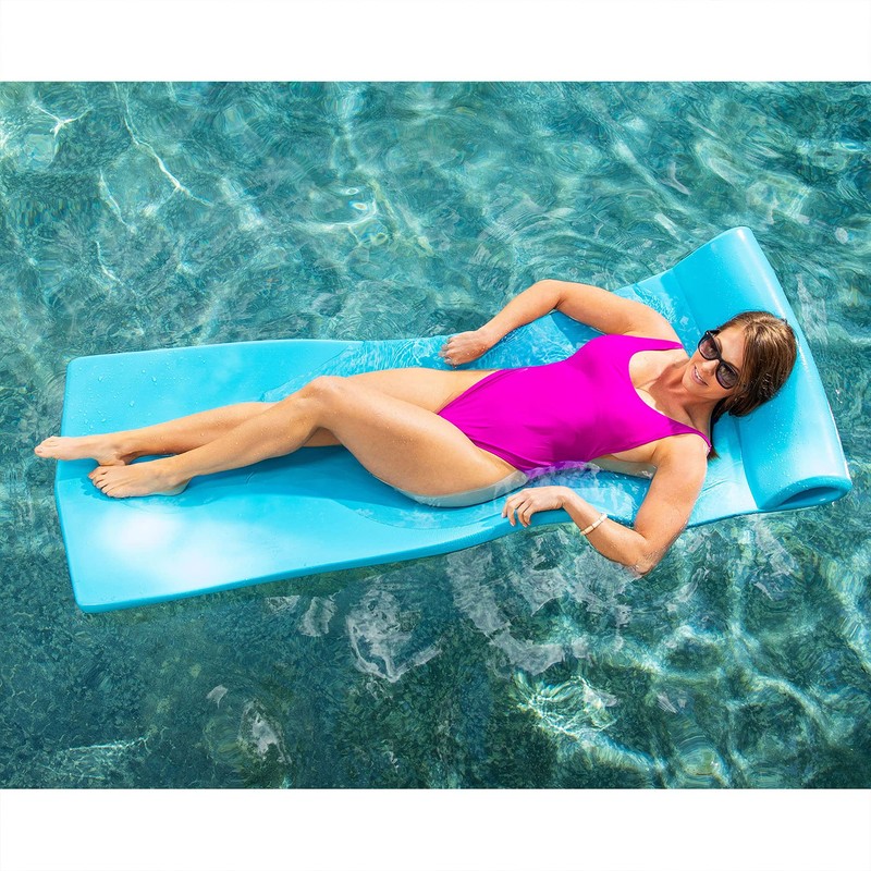 - Features a 1.25 inches float away to your summer paradise, whether it be in your backyard swimming pool or in the beach using this floating mat featuring a roll pillow for added buoyancy