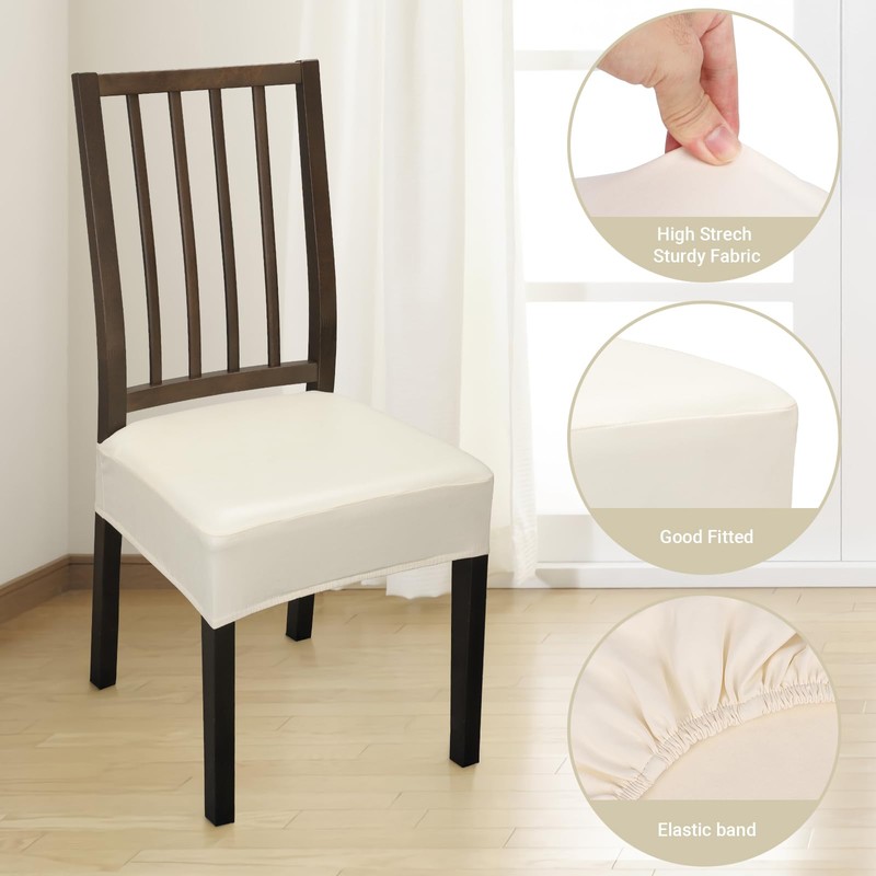 - 【Package Included】Includes 6pcs beige PU leather chair covers. Dining chair covers fit seat cushion length 15"-16"; width 15"-16"; seat cushion thickness 3"-4". Please measure your chairs before ordering these dining chair covers to ensure the best fit.