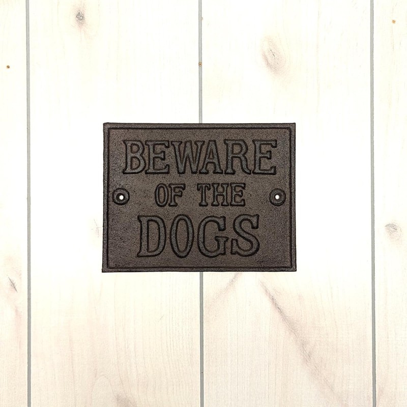 Treasure Gurus Cast Iron Beware of Dogs Warning Caution Sign Rustic Home Fron...