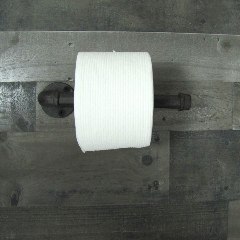 - Add an industrial look to your bathroom with this metal pipe toilet paper rack