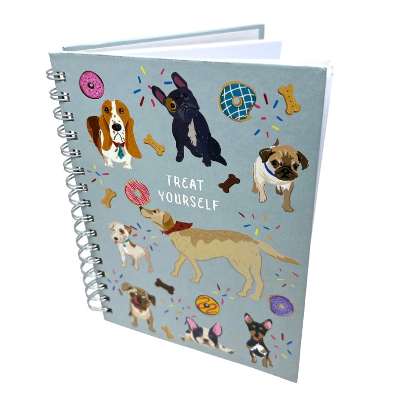 Treat Yourself by Baxter Paper Writing Diary Journal Notebook | Beautiful and Whimsical Design | 60% Recycled Paper | 6"x8.25" Hardcover Spiral with 300 Lined Pages | Dog, Puppy Donuts | Poodle, German Shepherd, French bulldog, Boxer