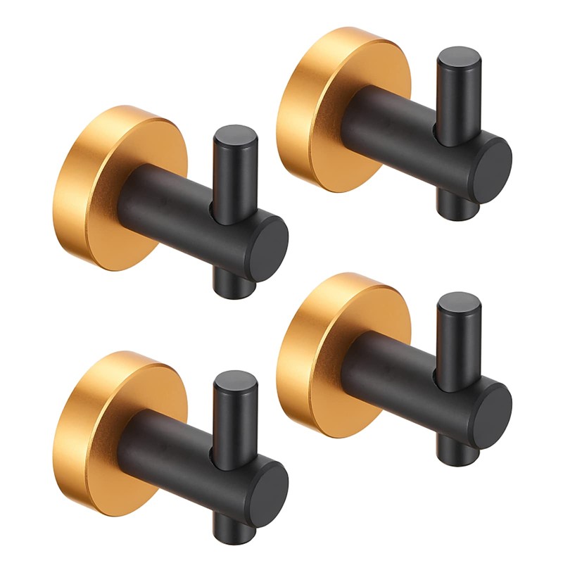 TREATLIFE HOME Durable Round Base Wall Hanging Hooks for Space Saving Organization, 4 Pack Metal Hooks, Black and Gold Finish