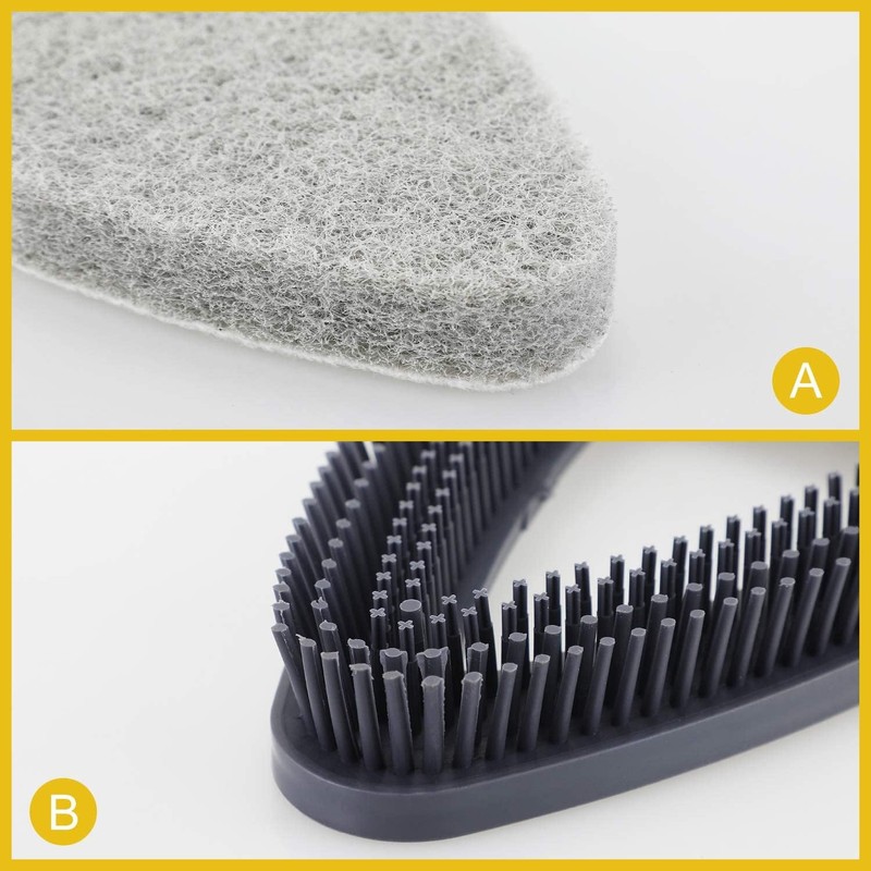 Dual for Comprehensive CleaningEquipped with two thick, scrubbing pads and a stiff brush, this cleaning tool effectively targets grime on your bathtub, sink, walls, and toilets. It provides versatility, accommodating various surfaces and cleaning needs, for a complete clean every time.